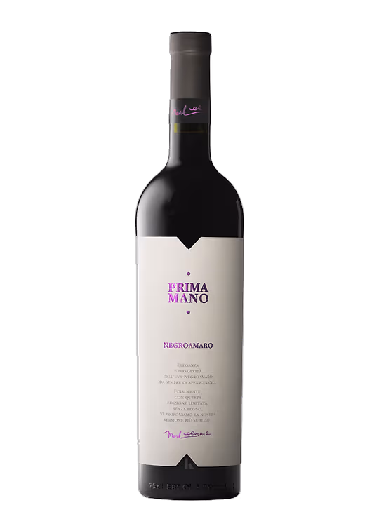 Vinul de astazi, Prima Mano Negroamaro 2017, este un vin rosu rubiniu cu arome olfactive de violete, trandafiri, prune si cirese negre.