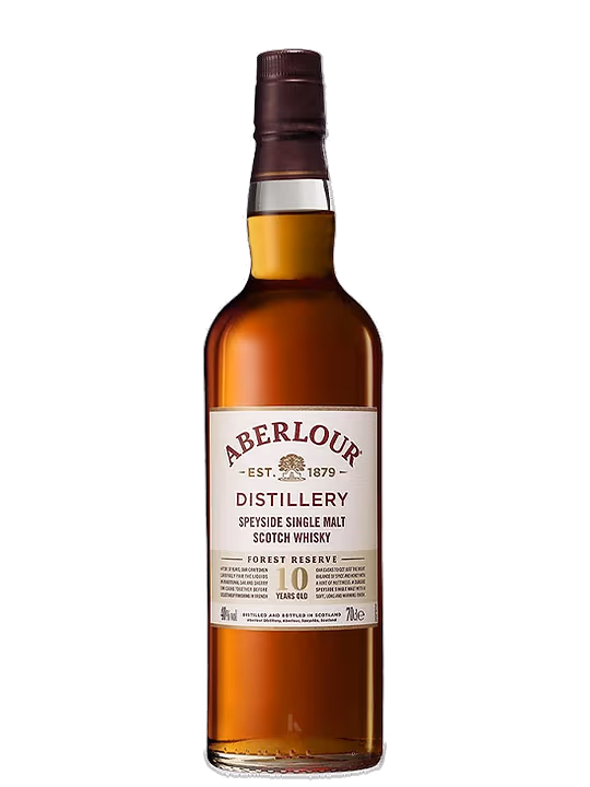 Forest Reserve ofera note de flori proaspete, coaja de lamaie, fructe de padure, prune, vanilie, stafide, pepene, nuci, ghimbir, piper negru, ovaz, ierburi tocate, produse de patiserie proaspete si ciocolata cu lapte. 10 YO Forest Reserve provine de la angajamentul continuu al Aberlour de a ajuta la conservarea padurii din Speyside.
