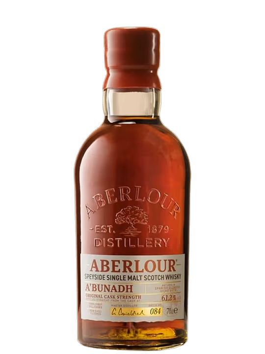Aceasta bautura fina este una consistenta, cu o textura cremoasa si ampla, elementele dominante care completeaza gustul si aroma desavarsita sunt notele distincte de stafide. Aberlour A'bunadh este unul dintre single malturile care nu isi dezvaluie varsta. Creat in cantitati foarte mici, este lasat la maturat intre 5 si 25 de ani, in butoaie din stejar ce au fost umplute pentru perioade indelungate cu sherry.