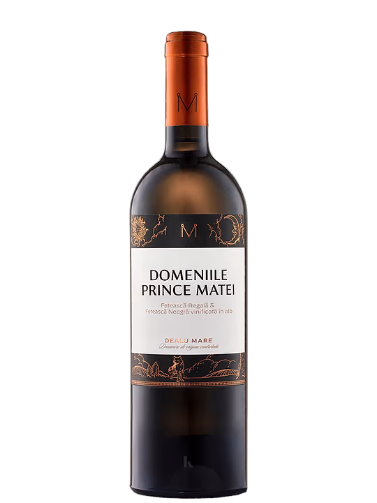 Vinurile Domeniile Prince Matei simbolizeaza noua generatie de Vinuri din Dealu Mare, noi si distinse, ce pot fi pretuite singure sau in diferite asocieri culinare. Are un cupaj din soiurile de struguri Feteasca Regala si Feteasca Neagra (vinificat in alb). O parte din Feteasca Regala a fost maturata in butoaie noi din stejar romanesc timp de 4 luni. Are arome diafane de flori de camp, miere si caise albe se impletesc placut cu notele de cirese si mere rosii proaspete, dar si cu ierburi vegetale, care ii amplifica senzatia de prospetime. Asocieri Gastronomice: peste, fructe de mare, platouri cu branzeturi, pui.