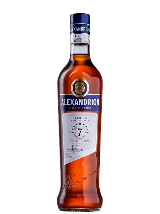 Aceasta bautura de culoarea chihlimbarului este obtinuta cu ajutorul tehnologiei de ultima generatie si reuseste sa ne incante cu un gust care aminteste atat de traditia greceasca, cat si a preferintelor consumatorilor romani. Alexandrion 7* este obtinut din vinuri romanesti de cea mai buna calitate. Acest sortiment este invechit in butoaie de stejar, ceea ce confera gustului anumite note lemnoase si vanilate.