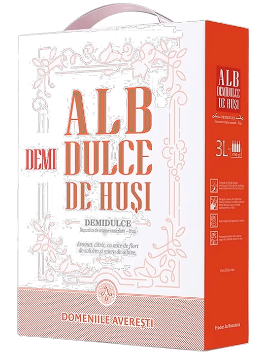 Domeniile Averesti Alb Dulce de Husi Bag in Box 3 L ofera o gama variata de arome, incepand de la notele florilor de vita de vie si pana la parfumurile florilor de salcam.
