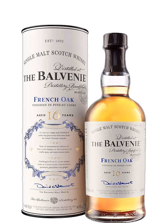 Balvenie 16YO French Oak Pineau Cask este un single malt vibrant, invechit, finisat in butoaie de vin provenite din podgoriile franceze Charentes.
