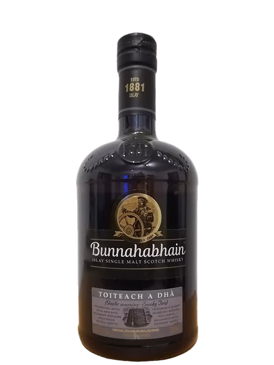 Bunnahabhain Toiteach a Dha este un single malt whisky produs de distileria Bunnahabhain din insula Islay, Scotia. "Toiteach a Dha" se traduce din gaelica ca "fum al doilea", indicand faptul ca acest whisky este obtinut prin utilizarea unei cantitati mai mari de malt uscat in fumul de turba decat se obisnuieste. Procesul de productie incepe cu maltirea orzului, urmata de uscarea acestuia in fumul de turba pentru a-i conferi whisky-ului un gust si o aroma specifica. Bunnahabhain Toiteach a Dha este imbuteliat la o concentratie de alcool de 46,3% vol., fara filtrare la rece, ceea ce ii pastreaza caracterul intens si autentic. Are o culoare aurie, cu arome puternice de fum de turba, insotite de note de caramel, vanilie, citrice si miere. Gustul este bogat, cu arome puternice de fum si turba, echilibrate de note dulci de ciocolata, vanilie si fructe uscate.