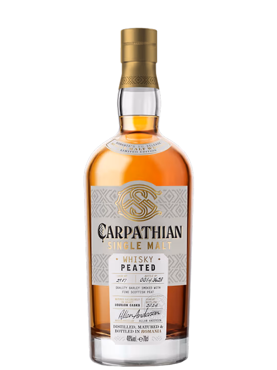 Carpathian Single Malt Peated se deschide cu un profil aromatic surprinzător de delicat, în care notele dulci de vanilie și caramel sunt completate de accente discrete ce amintesc de bomboane. Ansamblul olfactiv este echilibrat și pregătește palatul pentru un caracter mai intens.