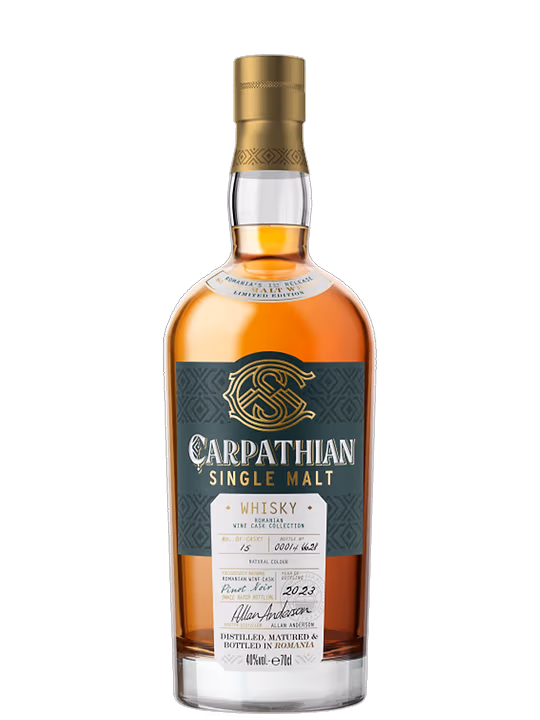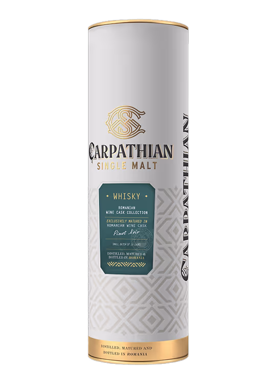 Acest Single Malt a fost maturat exclusiv in butoaie de Pinot Noir, provenite din crama proprie, reprezinta o premiera atat pentru Alexandrion Group, cat si pentru Romania. Are un gust intens de miere, stafide, struguri rosii, zmeura si cu aroma discreta de nuca. Carpathian este prima gama de whisky single malt produsa in Romania. Utilizarea butoaielor de vin romanesc este o „premiera mondiala” in ceea ce priveste productia de single malt, in pofida istoriei de 2.000 de ani a Romaniei in ceea ce priveste productia de vin. Carpathian Single Malt se alatura portofoliului Alexandrion Group. Orzul nostru maltificat este produs 100% in Romania, impreuna cu apa pura din dealurile subcarcaptice. Whisky-ul nostru single malt este distilat folosind metoda traditionala scotiana de dubla distilare, butoaie de Bourbon Kentucky cu finisare in butoaie de vin si coniac. Toate aceste caracteristici confera whisky-ului Carpathian Single Malt un caracter exceptional si unic.
