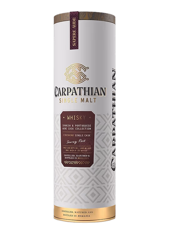 Single Malt Tawny Port prezinta note condimentate de scortisoara si un gust dulce cu note de bomboane, vanilie si piersici. Finisarea în butoi de 500 l de vin portughez Tawny Port, atent selectat direct de catre Master Distiller-ul nostru, ofera expresiei Carpathian culoarea de cupru, mirosul intens cu note de stejar, miere si aromele dulci si o nota finala complexa. Carpathian este prima gama de whisky single malt produsa in Romania. Utilizarea butoaielor de vin romanesc este o „premiera mondiala” in ceea ce priveste productia de single malt, in pofida istoriei de 2.000 de ani a Romaniei in ceea ce priveste productia de vin. Carpathian Single Malt se alatura portofoliului Alexandrion Group. Orzul nostru maltificat este produs 100% in Romania, impreuna cu apa pura din dealurile subcarcaptice. Whisky-ul nostru single malt este distilat folosind metoda traditionala scotiana de dubla distilare, butoaie de Bourbon Kentucky cu finisare in butoaie de vin si coniac. Toate aceste caracteristici confera whisky-ului Carpathian Single Malt un caracter exceptional si unic.