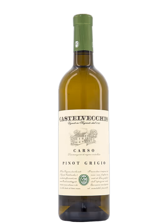 Castelvecchio produce un Pinot Grigio emblematic, reprezentativ pentru regiunea Friuli. Acest vin este creat in zona carstica a provinciei Gorizia, intr-un mediu extrem de arid si stancos, caracterizat prin un strat de sol rosu bogat in calcar si fier.