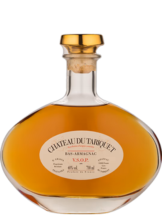 In randul Castelului Tariquet au luat nastere in ultimii ani cele mai prestigioase cogniacuri, rezultatul viu al celor mai tinere culturi de struguri Ugni Alb si Baco identificate pe coasta sud-vestica a Frantei vinificate in modalitati distincte, imbatranirea avand loc in butoaie de stejar timp de minimum 7 ani pentru a integra o configuratie unica si un buchet aromatic deosbit de expresiv.