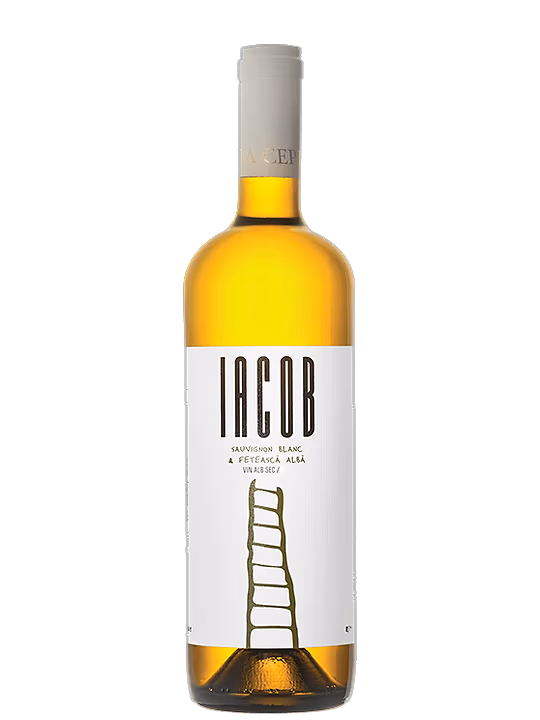 Obiectivul acestui vin este de a-si exprima cat mai bine aromele si a le pastra, astfel incat degustatorul sa se bucure de personalitatea sa interesanta. Strugurii alesi pentru realizarea vinului provin din soiurile Sauvignon Blanc si Feteasca Alba, ei fiind culesi in momentul oportun, astfel incat sa-i ofere vinului caracteristicile sale pentru care este foarte apreciat. Iacob alb este un vin cu un aspect cristalin, culoarea sa fiind verde-galbui.