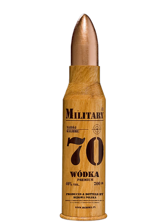 Debowa Military Vodka este o vodcă premium poloneză care impresionează de la prima vedere prin ambalajul său distinctiv – o sticlă încastrată într-o carcasă robustă de lemn, modelată sub forma unui glonț. Dincolo de aspectul său memorabil, oferă o experiență olfactivă elegantă, cu arome primitoare de cereale, vanilie fină și stejar, completate discret de caramel și condimente calde.