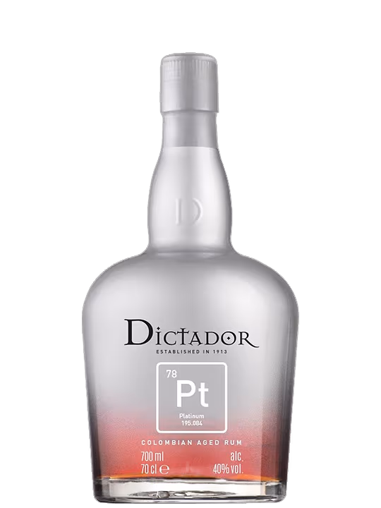 Dictador Platinum este un rom de lux provenit din Columbia, recunoscut pentru calitatea sa exceptionala si profilul aromatic complex. Acest rom face parte din gama premium a distileriei Dictador, care este renumita pentru producerea unor romuri rafinate folosind metode traditionale de distilare combinate cu tehnici moderne. Acest rom premium se potriveste excelent cu deserturi bogate, cum ar fi prajituri cu ciocolata, tiramisu, sau fructe uscate. De asemenea, poate fi savurat alaturi de branzeturi maturate sau nuci, completand experienta degustativa cu arome complementare.