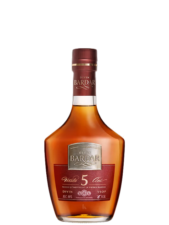 Brandy-ul Divin Bardar de 5 ani face parte din colectia Silver a vinariei Bardar, intrata in portofoliul gupului Purcari, certificand inca odata in plus calitatea acestuia. Pentru producerea lui sunt folosite distilate de cea mai buna calitate, care au o vechime de cel putin cinci ani. Brandy-ul se face remarcat printr-o armonie perfecta a gustului, in care se resimt notele florale si aroma de stejar. Are culoarea chilimbarului, miros floral si parfumat.