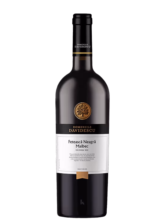 Domeniile Davidescu Fetească Neagră & Malbec se deschide cu arome intense de prune uscate, fructe de pădure și coacăze negre, îmbogățite de o notă subtilă de cacao și scorțișoară. Accentele fine de rodii adaugă un plus de prospețime, completând un buchet rafinat și bine echilibrat.
