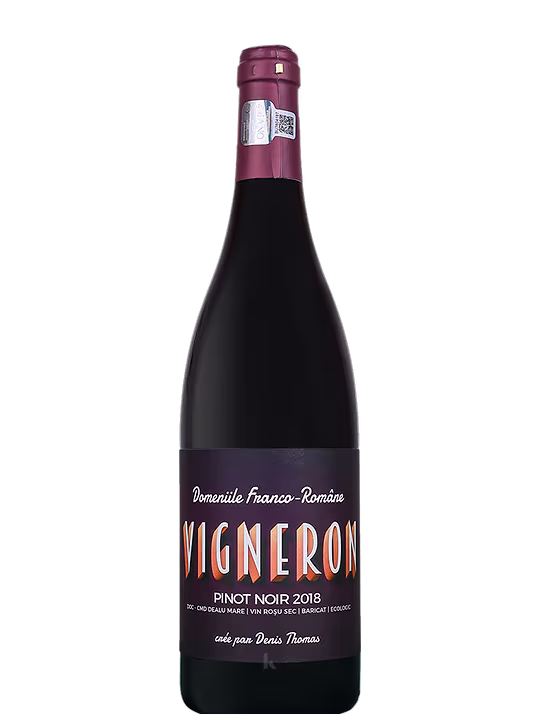 Domeniile Franco Romane Vigneron Eco Pinot Noir Baricat cu taninuri inca puternice pe care invechirea in sticla nu le-a imblanzit total. Puternic, barbatesc, usor de asociat cu diverse tipuri de carne rosie.