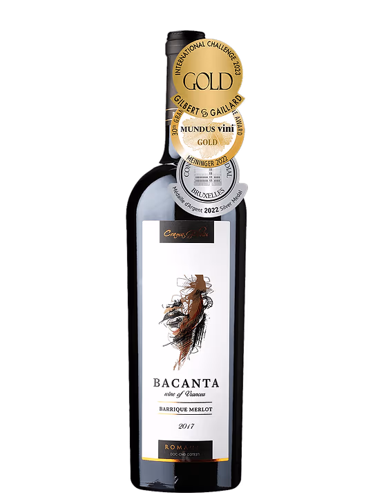 Bacanta Merlot Barrique este vin rosu cu adevarat deosebit! Acest Merlot este maturat in butoaie noi de stejar francez si invechit cativa ani in sticla. Gustul este intens, cu arome de cirese negre si cacao, urmate de condimente indulcite cu vanilie. Gustul are taninuri moi si aciditate moderata. Vinul trebuie decantat cel putin o ora pentru a-si evidentia calitatile.