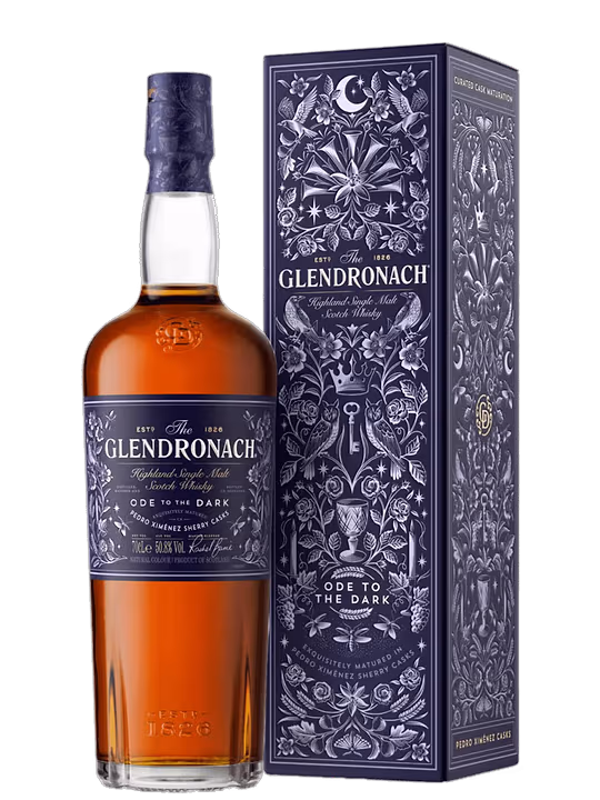 Glendronach Ode To The Dark se prezintă cu un miros complex și bogat, unde se împletesc note de mocha, cireșe negre și ciocolată neagră. Acestea sunt completate de arome de crème brûlée cu stafide, zahăr brun și o atingere discretă de ghimbir, oferind un profil olfactiv intens și echilibrat.