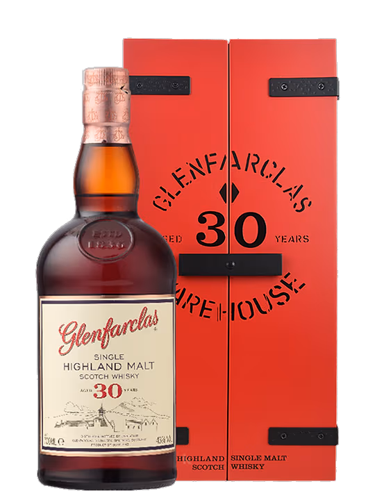 Aceste detalii ofera rafinament si eleganta, doua calitati apreciate de amatorii de whisky. Aroma care domina mireasma lui lui Glenfarclas 30 ani este dulce de fructe confiate. Mirosul placut de iarna este completat de notele elegante de coji se portocale si turta dulce. Gustul acestui whisky este bogat, conturat in jurul aromelor specifice sezonului rece.