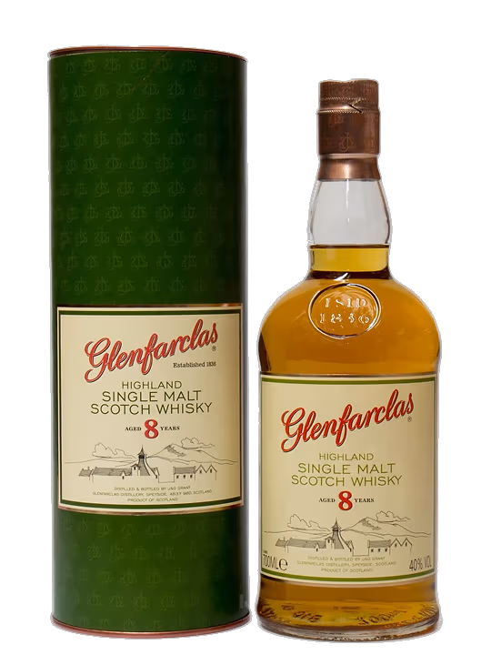 Glenfarclas 8 ani pastreaza traditia single-malturilor preparate in regiunea Speyside. Aromele inedite ce formeaza buchetul se dezvaluie usor, usor pe masura ce simturile sunt acaparate. Acest sortiment chiar daca este unul tanar are personalitate puternica si consistenta echilibrata. Textura fina a lui Glenfarclas 8 ani este definita in butoaie de stejar ce au maturat pentru o perioada indelungata sherry de Oloroso.