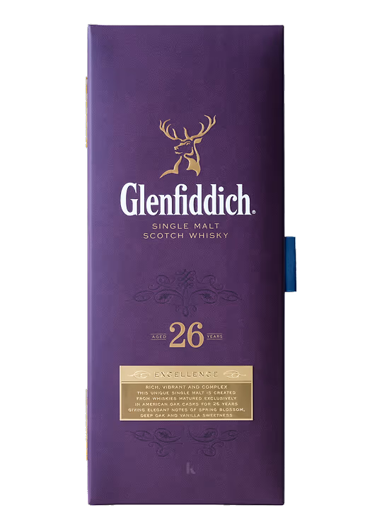 Obtinut din cea mai buna recolta de cereale si apa pura, Glenfiddich 26 ani si-a desavarsit caracteristicile inedite si personalitatea puternica in butoaie de stejar ce au maturat inainte burbon. Astfel imprumuta din rafinamentul acestia, fapt ce ii sporeste eleganta.