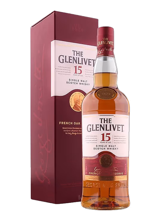 Sortimentul aduce laolalta energia peisajelor scotiene si bogatia fructelor de livada. Glenlivet 15 ani este un single malt distins, usor de baut si de apreciat. Pastreaza elementele clasice apreciate de amatorii de lucruri fine: consistenta, textura catifelata, gust bogat, parfum intens.