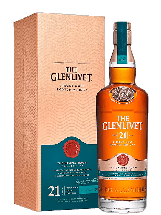 Glenlivet 21YO The Sample Room Collection este un whisky single malt scotian premium, care face parte din renumita colectie Glenlivet. Acest whisky de 21 de ani este o expresie sofisticata si complexa, care a fost maturata timp indelungat pentru a dezvolta arome profunde si un gust bogat. Facand parte din colectia "The Sample Room," acest whisky reflecta angajamentul distileriei Glenlivet pentru inovatie si excelenta in productia de whisky-uri de inalta calitate.