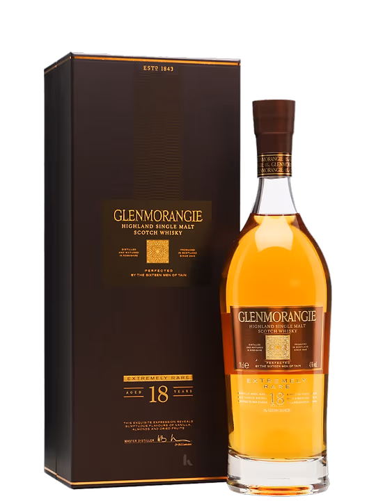 Glenmorangie 18 ani Extremely Rare este un whisky sofisticat, destinat cunoscatorilor care doresc sa se bucure de un malt original cu gust bogat fermecator. Aromele si corpolenta acestuia sunt conturate in cei 18 ani de maturare in butoaie de stejar alb american. Particularitatile lui sunt capatate in ultimii 3 ani cand, 30% din whisky-ul maturat este mutat in butoaie de Sherry Oloroso.