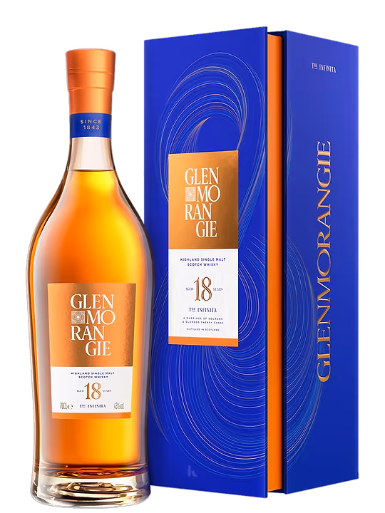 Glenmorangie 18 ani The Infinita este un whisky sofisticat, destinat cunoscatorilor care doresc sa se bucure de un malt original cu gust bogat fermecator. Aromele si corpolenta acestuia sunt conturate in cei 18 ani de maturare in butoaie de stejar alb american. Particularitatile lui sunt capatate in ultimii 3 ani cand, 30% din whisky-ul maturat este mutat in butoaie de Sherry Oloroso.