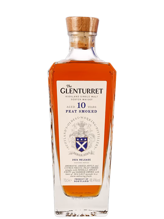 Glenturret 10 YO Peat Smoked se deschide cu arome echilibrate de măr uscat și citrice, peste care se ridică un fum delicat de turbă. Notele subtile de vanilie și fructe dulci se combină armonios cu accentele ușor sărate, oferind o senzație complexă și curată.