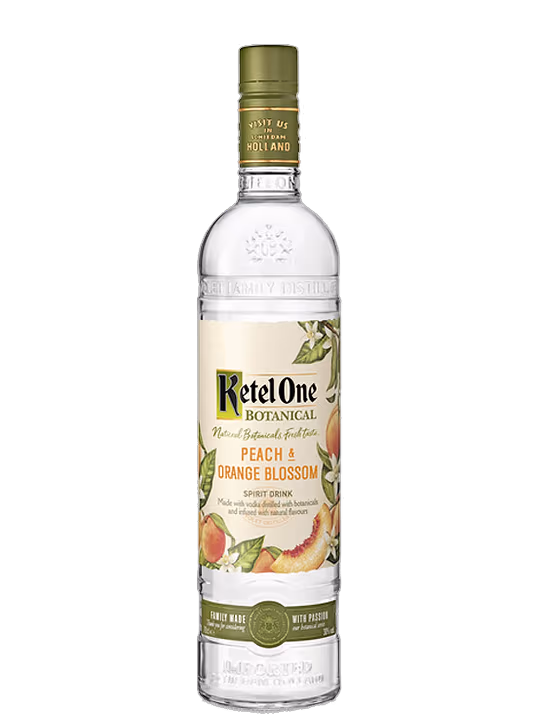 Ketel One Botanical Peach & Orange Blossom ii atrage pe cei care se bucura de piersici albe luxuriante, suculente si de notele indraznete de flori parfumate de portocal. Fiecare esenta botanica este obtinuta individual si natural prin metode inovatoare de extractie si procese de distilare pentru cel mai proaspat si curat gust posibil.