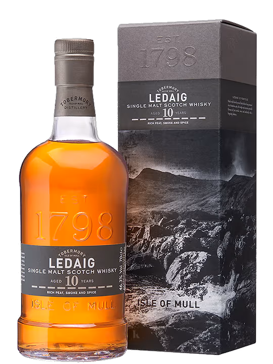 Ledaig 10 este un whisky single malt de 10 ani, exceptional si distins, creat artizanal. Acesta se caracterizeaza prin notele sale afumate, semnatura inconfundabila a distileriei Tobermory.