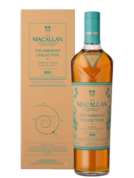 Macallan Harmony Jing se remarcă printr-un profil aromatic sofisticat, unde mierea florală și ciocolata neagră se îmbină cu note de coajă de portocală, completate de accente discrete de stejar, scorțișoară și cafea prăjită. Pe măsură ce se deschide, whisky-ul dezvăluie nuanțe fine de migdale, fructe confiate și vanilie, conturând un nas elegant și bine structurat.