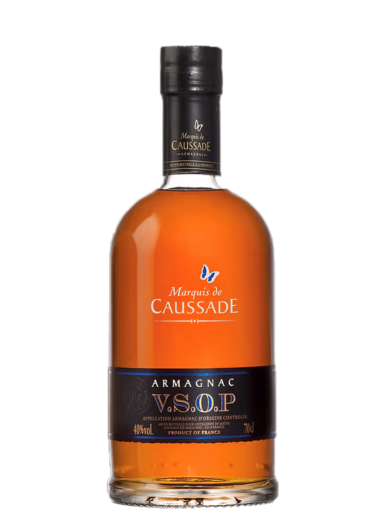 Marquis de Caussade VSOP este o alta varietate de brandy produs de Maison Ferrand in regiunea Cognac din Franta. Acest brandy este un blend de distilate cu o vechime medie de cel putin 4 ani, care au fost maturate in butoaie din lemn de stejar. Este un brandy bogat si complex, cu arome de fructe uscate, coaja de portocala, nuca si vanilie. Gustul este fin si echilibrat, cu note de miere, caramel si condimente. Este potrivit pentru a fi savurat simplu, la temperatura camerei, sau in cocktail-uri precum Sidecar sau Old Fashioned.