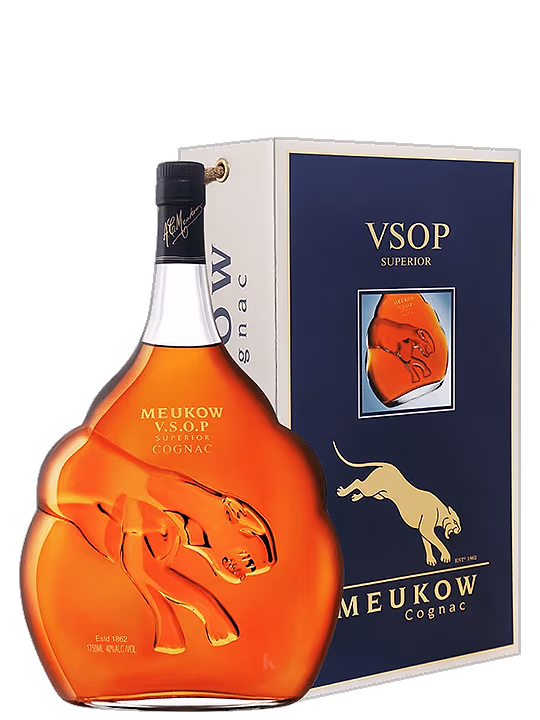 Meukow VSOP este o bautura puternica obtinuta din vin invechit in butoaie si amestecat folosind mai multe distilate. Acestea sunt fabricate in vestul Frantei, in regiunea Cognac. Chiar si cel mai tanar distilat folosit in VSOP are cel putin 4 ani. Puteti discerne note de fructe, condimente, stejar, vanilie, nuci, caise si cacao.