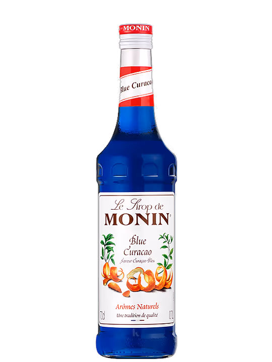 Siropul Blue Curacao de la Monin face ca dorul de vara si de plajele insorite sa nu se mai simta la fel de puternic cand este savurat intr-un cocktail exotic. Curacao este un ingredient ce aduce un plus de gust si de rafinament mixurilor in care este integrat, datorita nunatei sale de albastru electizant si al gustului sau unic usor amarui. Acesta este obtinut din ingrediente naturale, bine alese si pune in valoare orice cocktail, punch sau suc de fructe.