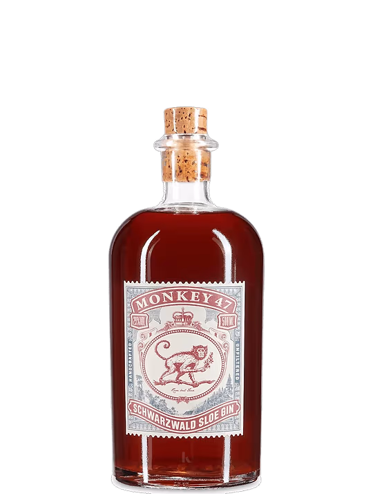 In Monkey Sloe Gin regasim o reteta unica si captivanta ce are la baza ca ingredient principal porumbele culese din muntii padurea neagra,in compozitia bauturi mai intra si o infuzie de plante botanice, creand astfel un gin unic revigorant. Fructele de porumbe sunt lasate pana aproape de primul inghet pentu a capta in ele concentratie maxima de zaharuri si tanini ce aduc un aport consistent de arome fructate in gust si prospetime. Macerarea si infuzarea are loc in mai multe etape si dureaza pana la 6 saptamani tot procesul de productie al ginului iesind din tiparul clasic al ginurilor dry, iar la final se foloste apa de izvor de cea mai buna calitate pentru a se capata nivelul de alcool dorit. Prin combinatia perfecta de ingrediente ginul capata un echilibru de arome sublim cu note de amar si tuse dulci ce vor incanta pasionati de gin.