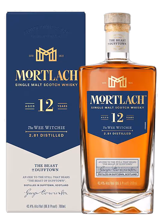 Mortlach 12 ani dezvaluie o paleta complexa de arome fructate, inclusiv pere si mere, cu note dulci de toffee si ciocolata neagra. Aromele se extind si pentru a include nuante de caramel, vanilie si faguri de miere, oferind senzatia de whisky usor cremos. Finish-ul este lung si incepe usor uscat, evoluand apoi cu arome de fructe tropicale.