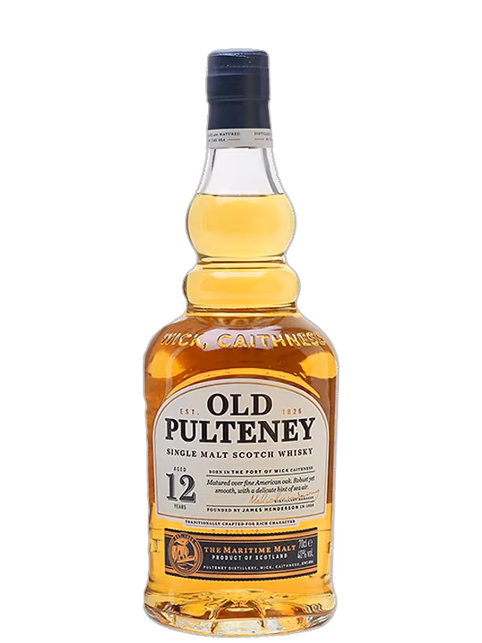 Acest whisky fin se contureaza in jurul aromelor sarate, fapt pentru care buchetul predominant este de alge marine si apa de mare. Personalitatea puternica o dezvolta in butoaiele de burbon in care este pastrat pentru 12 ani. Realizat prin metode traditionale transmise din generati in generatie, Old Pulteney 12 ani intriga si in acelasi timp maguleste simturile celor care stiu sa il aprecieze.
