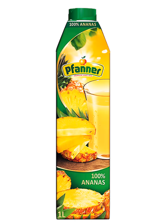 Sucul Pfanner din ananas 100% vă răsfaţă simţurile cu gustul intens al fructelor şi este o adevărată sursă de vitamina C. Conține doar zaharuri prezente în mod natural din fructe. Ananasul și-a dobândit reputaţia de rege al fructelor tropicale datorită „coroanei sale”. Nu fără motiv însă: pulpa galben-strălucitoare şi plină de savoare are o aromă unică și un gust intens. Există multe tipuri de ananas, de la acrişor la foarte dulce. Pentru 1 litru de ananas Pfanner se folosesc în jur de 2 kg din cele mai bune fructe coapte la soare și atent selectate.