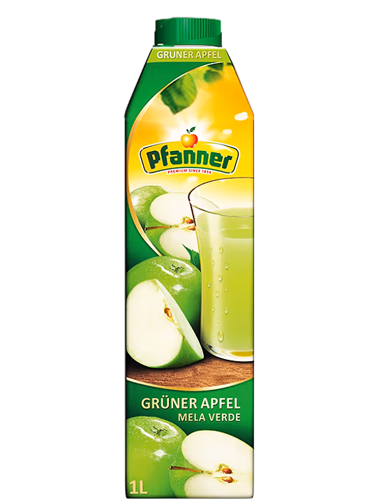 Băutura Pfanner obținută din mere verzi oferă o experienţă de neuitat și un gust autentic de fructe. Conținutul de fruct de minim 40% și pulpa delicioasă de mere conferă băuturii aromă şi savoare. Băutura Pfanner din mere verzi poate fi consumată ca atare sau poate fi folosită ca bază de fructe pentru diverse băuturi sau cocktail-uri.