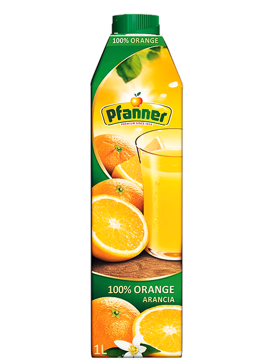 Sucul Pfanner din portocale 100% vă răsfaţă simţurile cu gustul aromat al portocalelor coapte la soare şi este bogat în vitamina C. Un litru de Pfanner 100% suc de portocale conţine în jur de 2 kg din cele mai bune portocale presate cu grijă în ţara lor de origine. Rezultatul: calitate superioară și un gust natural.
