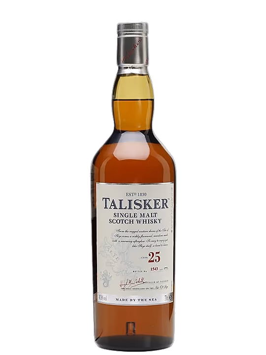 Talisker 25 ani este un whisky single malt de la distileria Talisker, imbuteliat in 2017 din doar 21498 sticle. Fiind un single malt scotian a fost maturat în principal în butoaie de stejar american, cu unele mixuri în butoaiede stejar european. Un produs spectaculos din frumoasa insulă Skye.