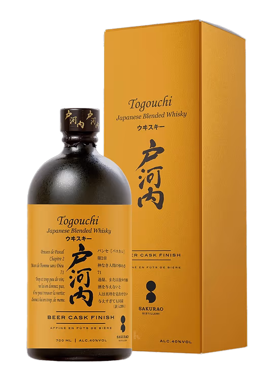 Togouchi Japanese Blended Whiskey Beer Cask Finish captează privirile cu o nuanță aurie vibrantă, evocând lumina caldă a unei zile însorite. Mirosul său proaspăt se deschide cu note revigorante de fructe albe și citrice, acompaniate de un fundal subtil de cereale, aducând o armonie de arome care îmbină tradiția japoneză cu influențele moderne.