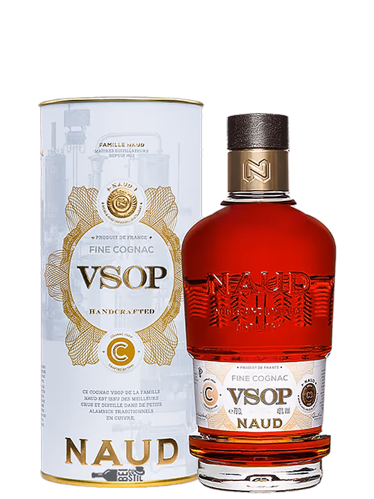 VSOP este produsul din gama Naud care corespunde celui mai popular stadiu de maturitate al coniacului. Convinge in pahar cu frumoasa sa culoare rosie-maronie, care prezinta o stralucire aurie. Aroma este foarte elegantă, nuantele de vanilie si aromele fructate de fructe uscate sunt completate de o usoara aroma picanta de scortisoara si nucsoara. Gustul coniacului Naud VSOP este fructat si foarte fin. Notele fructate de piersica si portocala apar inainte sa treaca la un final marcat de stejar. Per total, Naud VSOP este un reprezentant foarte demn si foarte aromat al nivelului sau de calitate. Nu e de mirare, asadar, ca a fost premiat cu o medalie de aur la International Spirits Challenge 2017 si cu o medalie de argint la Spirits 2017.