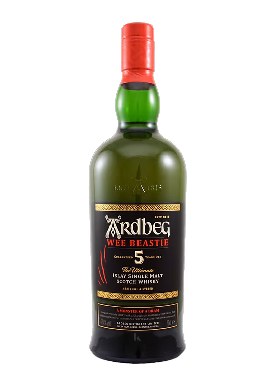 Un single malt tanar si neimblanzit de la Ardbeg, Wee Beastie a petrecut 5 ani intr-o combinatie de butoaie de ex-bourbon si de ex-sherry inainte de a fi lansat. Aromele proaspete si vegetale de pere, piper negru, ace de pin, vanilie si sunca glazurata cu miere ce se amesteca cu anason, mar verde si cafea. Gustul ofera note de ciocolata neagra, gudron fierbinte, sunca afumata, anason si eucalipt care se aliniaza in final.