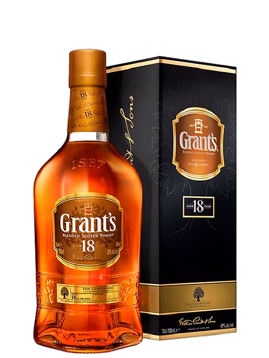 Grant's 18 ani este cel mai de seama sortiment ce poarta amprenta Grant and Sons. Premiile castigate in cadrul competitiilor de profil il transforma in bijuteria acestui brand. Creat dintr-o serie de malturi fine si rare si invechit pentru cel putin 18 ani, in butoaie artizanale de stejar european in care anterior a fost pastrat vinul de Porto, dezvolta personalitate complexa si caracteristici rafinate usor de apreciat.